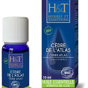 L'huile essentielle de Cèdre de l'Atlas est surtout connue pour ses propriétés toniques, apaisantes et lipolytiques. Purifiante, elle aide également à dégager la respiration. Son odeur fine et boisée invite à la méditation. Huile essentielle BIO 100% pure et naturelle.                                                                                                   Contenance: 10 ml