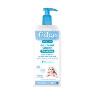 Gel lavant bébé sans parfum, idéal pour les peaux sensibles à réactives. Fabrication : France. Contenance : 475 ml.