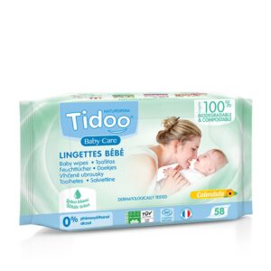 Découvrez la nouvelle gamme de soins écologiques pour bébé Tidoo Care : Lingettes bébé compostables Calendula. Contenance : 58 lingettes.