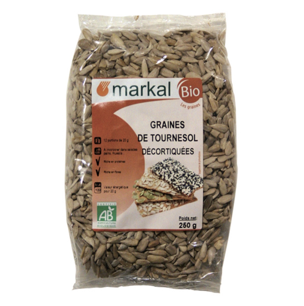 Graines de tournesol décortiquées issues de l’agriculture biologique. A incorporer dans tous vos plats et préparations selon vos envies. Sachet de 250g.