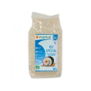 Le riz spécial sushi Markal est un riz tendre, collant permettant de modeler très facilement les boulettes de sushis Origine: Italie  Contenance : 500g