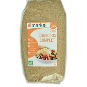 Le couscous complet est obtenu à partir de semoule de blé dur complète et d’eau. Les grains obtenus sont ensuite précuits et séchés. La couleur du couscous complet varie du jaune ambré au brun clair.